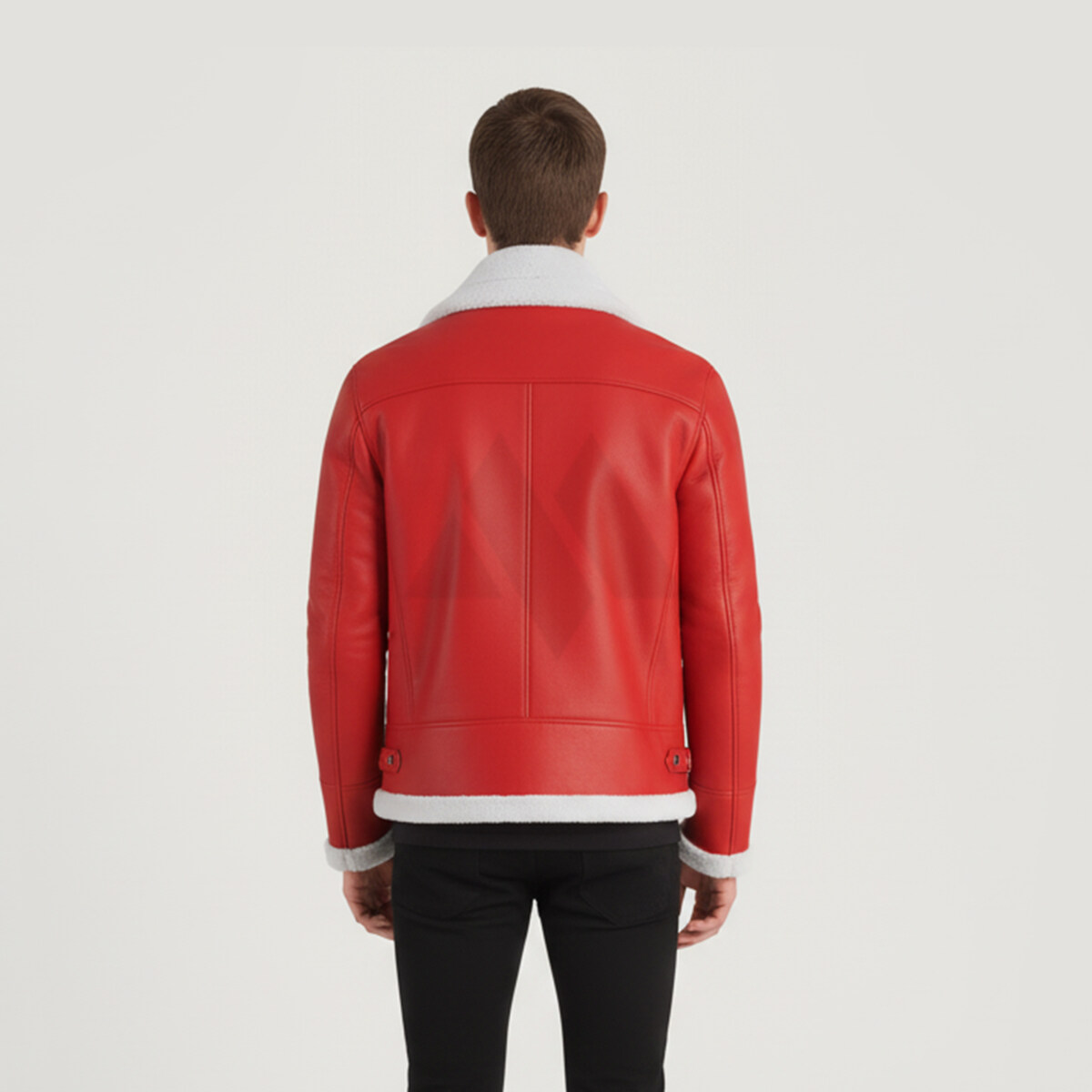Each red shearling jacket is fully custom-made to your exact specifications. Choose your preferred leather type, select from our wide range of colors, and specify your precise measurements for a perfect fit. Whether you prefer genuine sheepskin, lambskin, or cowhide leather, we craft each piece to match your unique style and body dimensions.