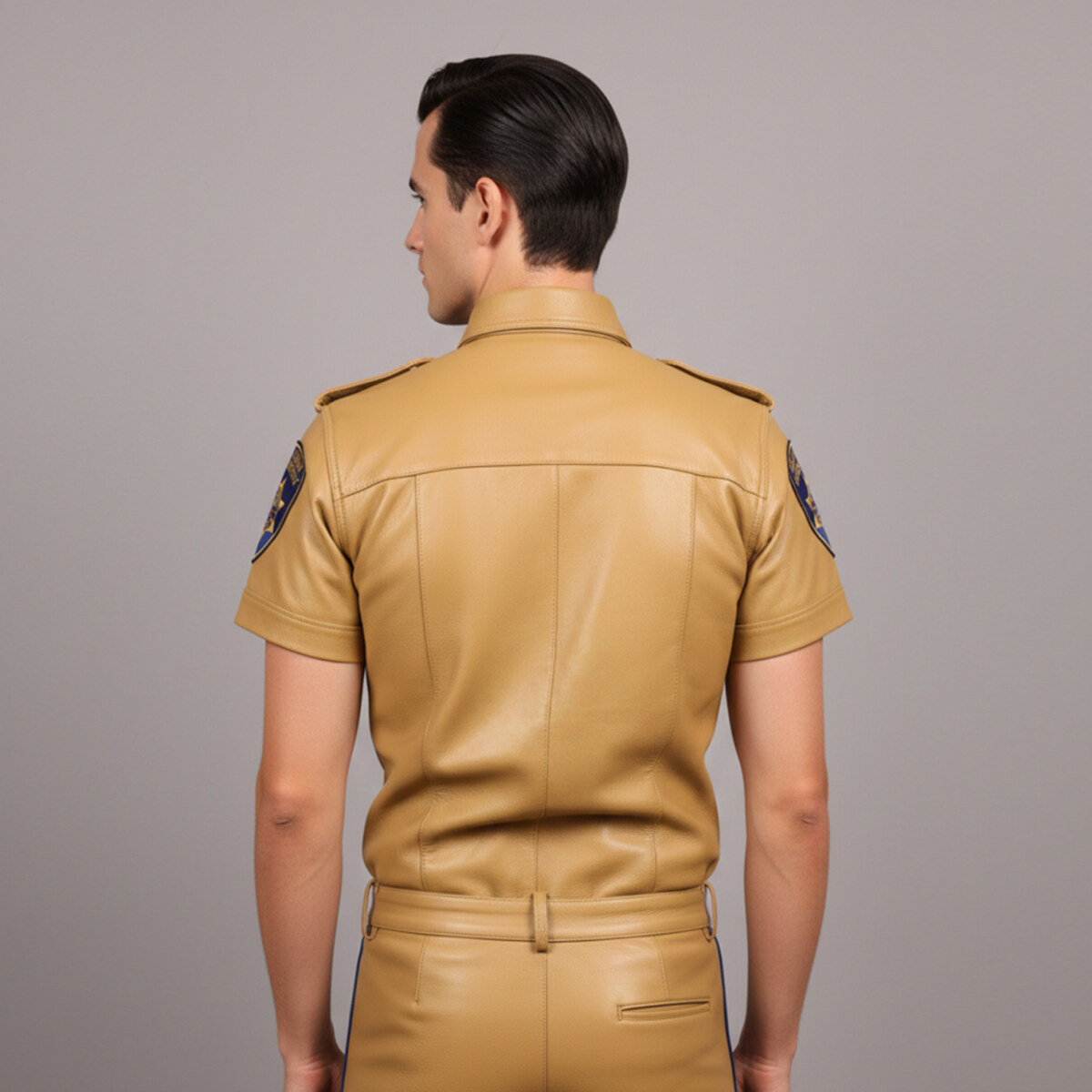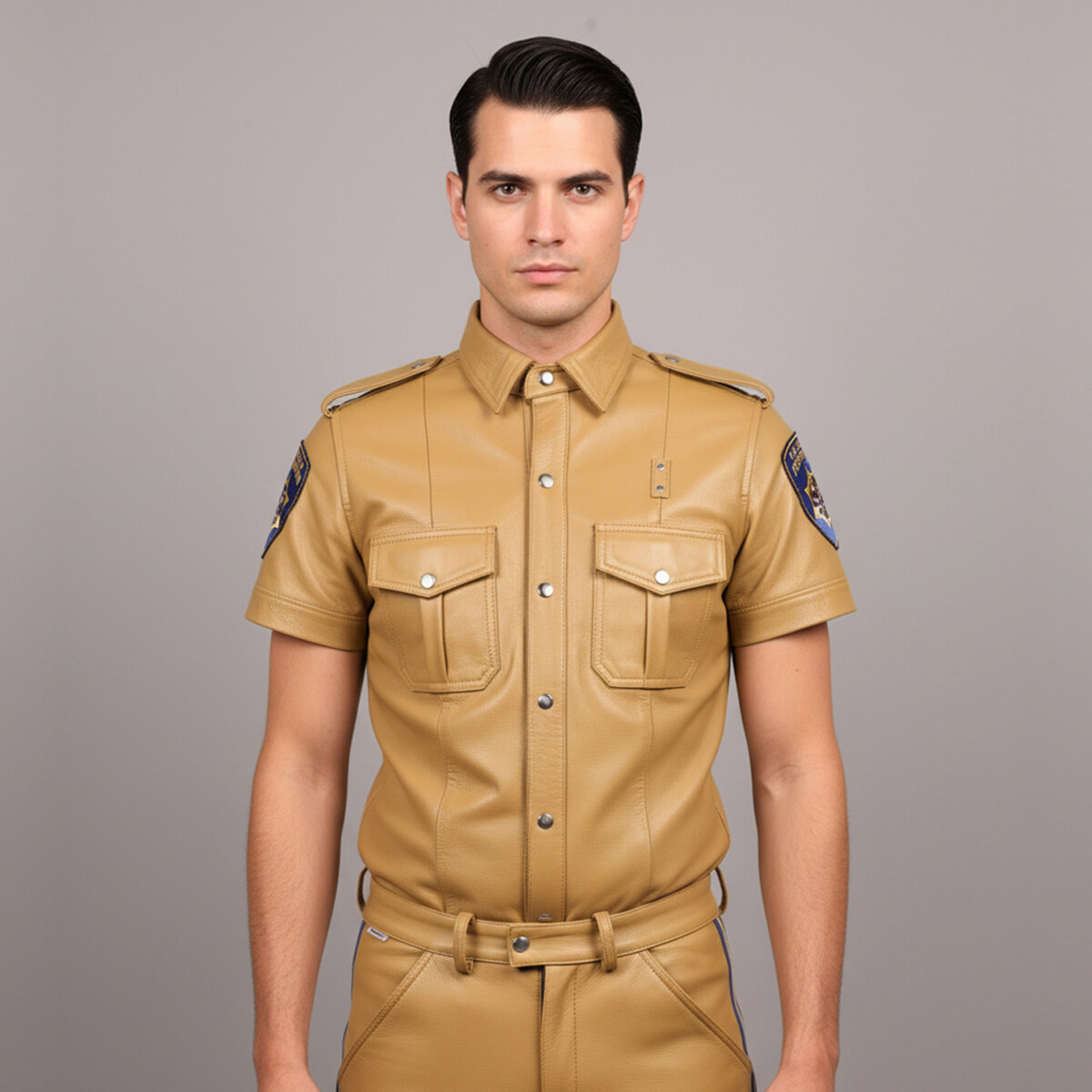 Step into commanding style with the CHP Leather Shirt, a modern reinterpretation of classic law enforcement attire. Inspired by the iconic California Highway Patrol uniform, this shirt is meticulously handcrafted from genuine cowhide leather in a refined tan finish—delivering durability, confidence, and unmistakable presence.