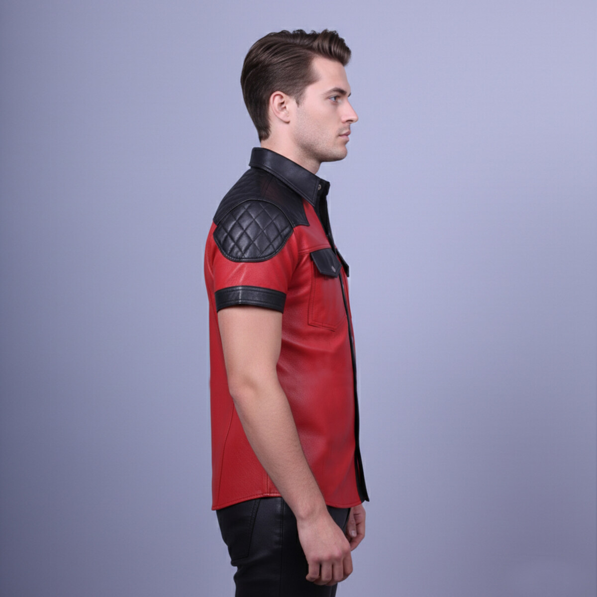 Padded Shoulder Leather Shirt – Bold Masculinity, Modern Edge