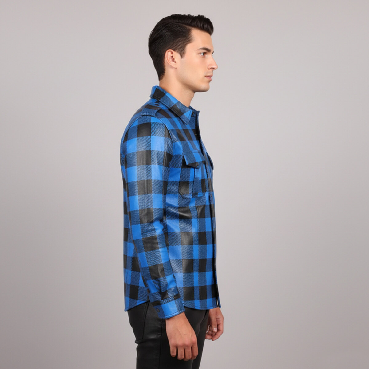 Command attention with the Tartan Style Leather Shirt—a bold fusion of classic plaid and premium leather. Handcrafted for durability and confidence, it delivers a masculine silhouette with glossy texture, epaulet detailing, and versatile styling. A true statement piece for men who lead with strength and style.