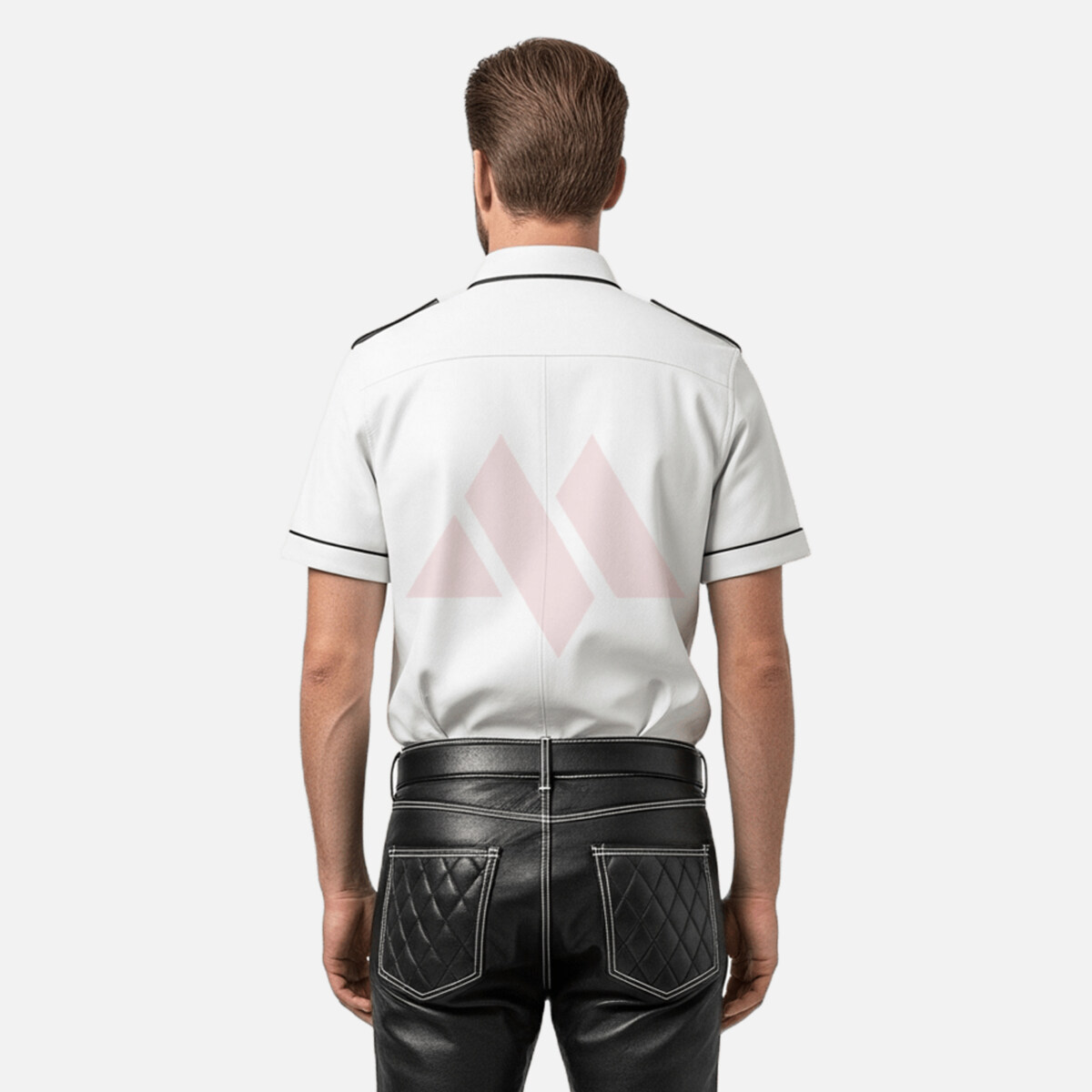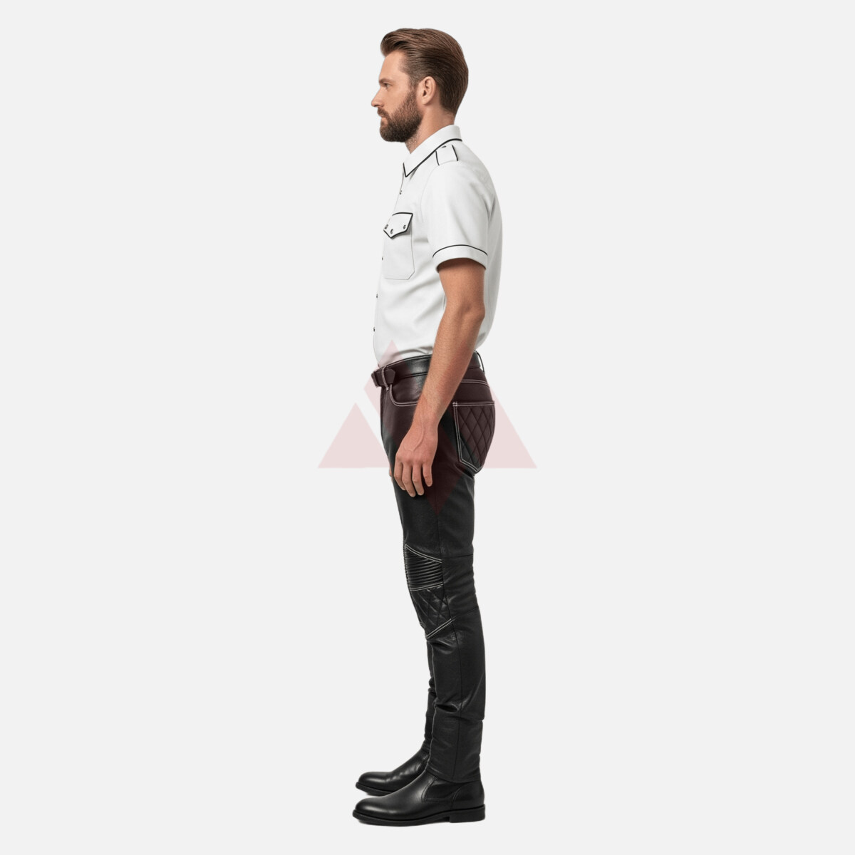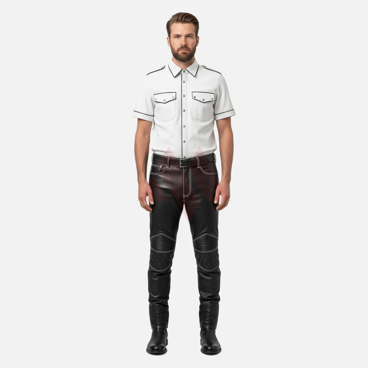 Command attention with our Men’s Luxury Black And White Leather Uniform, blending biker edge and premium tailoring. Crafted for bold style and lasting comfort, it’s a global fashion statement.